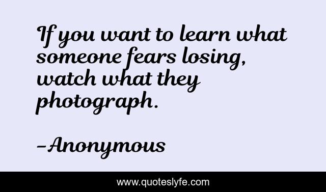 This page presents the quote "If you want to learn what someone fears losing, watch what they photograph.". Author of this quote is Anonymous. .