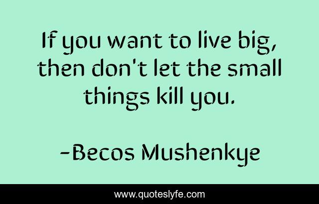 This page presents the quote "If you want to live big, then don't let the small things kill you.". Author of this quote is Becos Mushenkye. This quote is about life, life-and-living, life-lessons,.