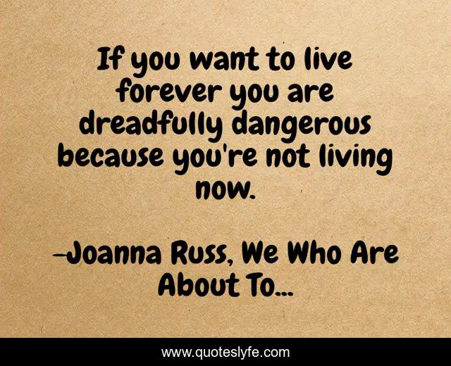 "Joanna Russ, We Who Are About To... Quotes." Quoteslyfe.com, 2025. Sat. 06 Dec. 2025. <https://www.quoteslyfe.com/quote/If-you-want-to-live-forever-you-245898>.
