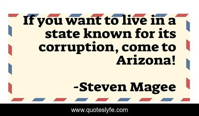 This page presents the quote "If you want to live in a state known for its corruption, come to Arizona!". Author of this quote is Steven Magee. This quote is about arizona, live, corrupt, state, known, az, come, corruption,.
