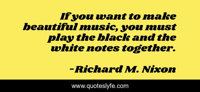 This page presents the quote "If you want to make beautiful music, you must play the black and the white notes together.". Author of this quote is Richard M. Nixon. This quote is about music, harmony, analogy, integration,.
