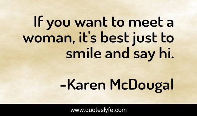 This page presents the quote "If you want to meet a woman, it's best just to smile and say hi.". Author of this quote is Karen McDougal. This quote is about woman, best,.