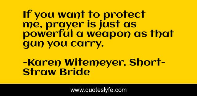 This page presents the quote "If you want to protect me, prayer is just as powerful a weapon as that gun you carry.". Author of this quote is Karen Witemeyer, Short-Straw Bride. .