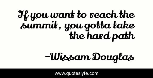 This page presents the quote "If you want to reach the summit, you gotta take the hard path". Author of this quote is Wissam Douglas. .
