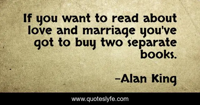 This page presents the quote "If you want to read about love and marriage you've got to buy two separate books.". Author of this quote is Alan King. .
