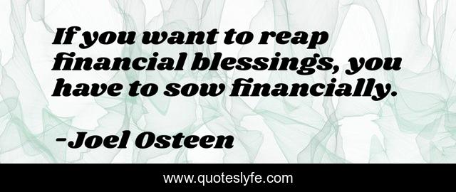 This page presents the quote "If you want to reap financial blessings, you have to sow financially.". Author of this quote is Joel Osteen. This quote is about blessings, financial,.