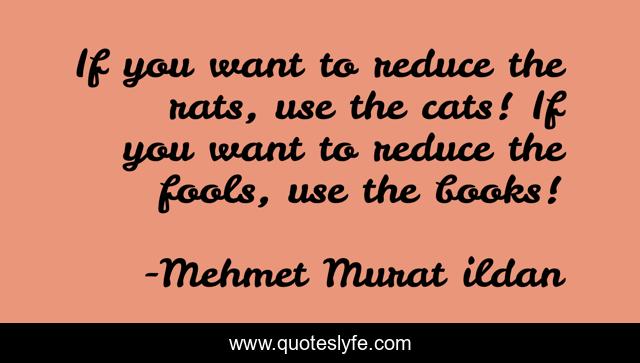 This page presents the quote "If you want to reduce the rats, use the cats! If you want to reduce the fools, use the books!". Author of this quote is Mehmet Murat ildan. .