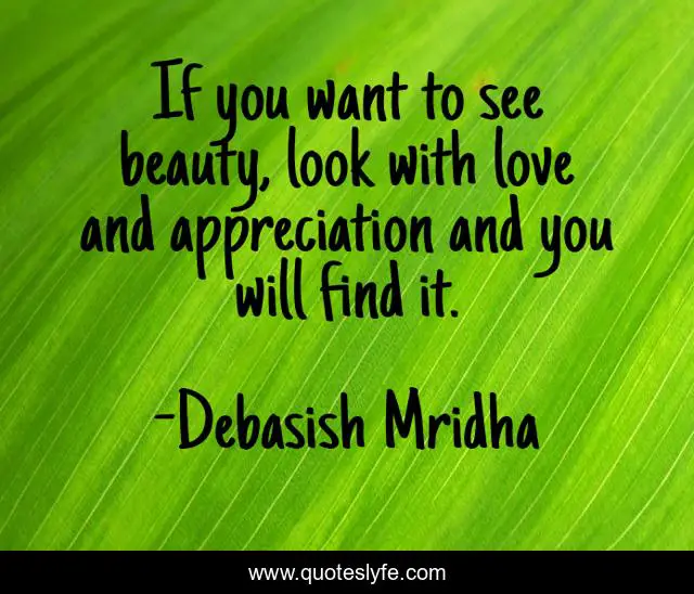 This page presents the quote "If you want to see beauty, look with love and appreciation and you will find it.". Author of this quote is Debasish Mridha. This quote is about love, beauty, appreciation, want-to-see-beauty, philosophy, debasish-mridha, quotes, debasish-mridha-md, inspirational,.
