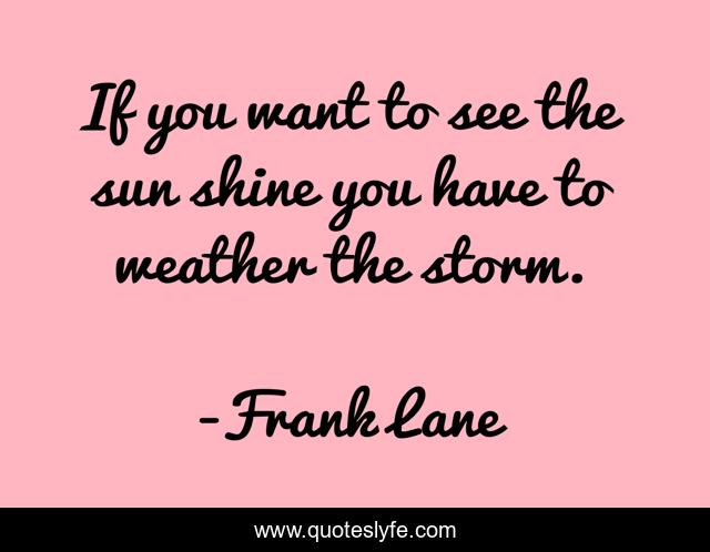 This page presents the quote "If you want to see the sun shine you have to weather the storm.". Author of this quote is Frank Lane. This quote is about , pressure, diamonds,.