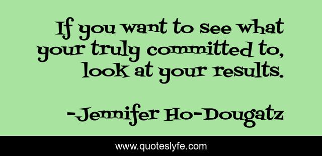 This page presents the quote "If you want to see what your truly committed to, look at your results.". Author of this quote is Jennifer Ho-Dougatz. This quote is about confidence, positive, motivational, results, commitment, result, inspirational, action, enthusiasm,.