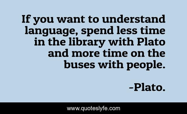 This page presents the quote "If you want to understand language, spend less time in the library with Plato and more time on the buses with people.". Author of this quote is Plato.. .