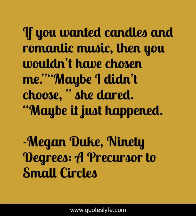 "Megan Duke, Ninety Degrees: A Precursor to Small Circles Quotes." Quoteslyfe.com, 2025. Sat. 06 Dec. 2025. <https://www.quoteslyfe.com/quote/If-you-wanted-candles-and-romantic-music-188946>.