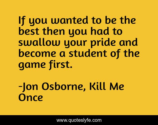 This page presents the quote "If you wanted to be the best then you had to swallow your pride and become a student of the game first.". Author of this quote is Jon Osborne, Kill Me Once. This quote is about educational, learning, study, student, ambition, attitude-toward-life, achievement,.