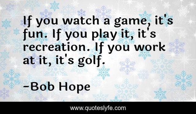 This page presents the quote "If you watch a game, it's fun. If you play it, it's recreation. If you work at it, it's golf.". Author of this quote is Bob Hope. This quote is about fun, work, golf,.