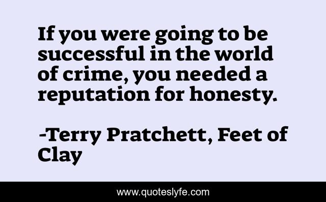 This page presents the quote "If you were going to be successful in the world of crime, you needed a reputation for honesty.". Author of this quote is Terry Pratchett, Feet of Clay. This quote is about humour, crime,.