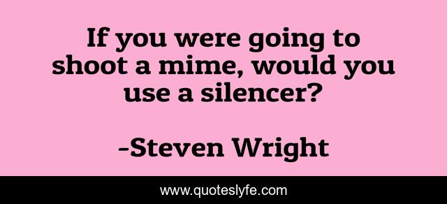 This page presents the quote "If you were going to shoot a mime, would you use a silencer?". Author of this quote is Steven Wright. This quote is about funny, comedy, humor,.