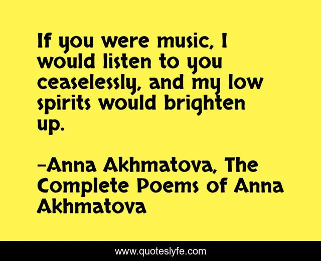 "Anna Akhmatova, The Complete Poems of Anna Akhmatova Quotes." Quoteslyfe.com, 2025. Sat. 06 Dec. 2025. <https://www.quoteslyfe.com/quote/If-you-were-music-I-would-listen-78661>.