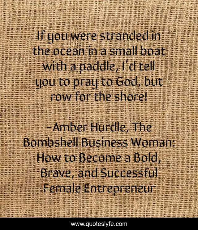 This page presents the quote "If you were stranded in the ocean in a small boat with a paddle, I’d tell you to pray to God, but row for the shore!". Author of this quote is Amber Hurdle, The Bombshell Business Woman: How to Become a Bold, Brave, and Successful Female Entrepreneur. This quote is about motivation, success, inspiration,.