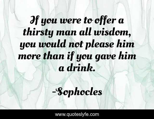 This page presents the quote "If you were to offer a thirsty man all wisdom, you would not please him more than if you gave him a drink.". Author of this quote is Sophocles. This quote is about drink, man,.