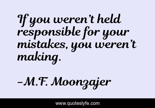 This page presents the quote "If you weren’t held responsible for your mistakes, you weren’t making.". Author of this quote is M.F. Moonzajer. This quote is about mistakes, responsible,.