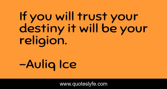 This page presents the quote "If you will trust your destiny it will be your religion.". Author of this quote is Auliq Ice. This quote is about atheism, phylosophy, destiny, success,.