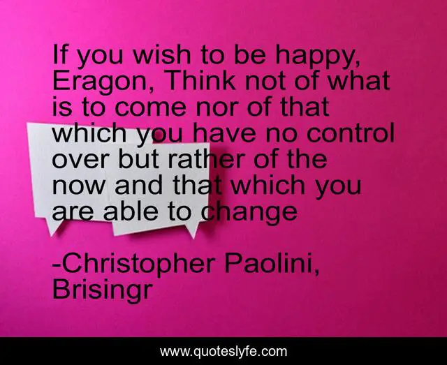 This page presents the quote "If you wish to be happy, Eragon, Think not of what is to come nor of that which you have no control over but rather of the now and that which you are able to change". Author of this quote is Christopher Paolini, Brisingr. This quote is about 618, happiness, oromis-to-eragon,.