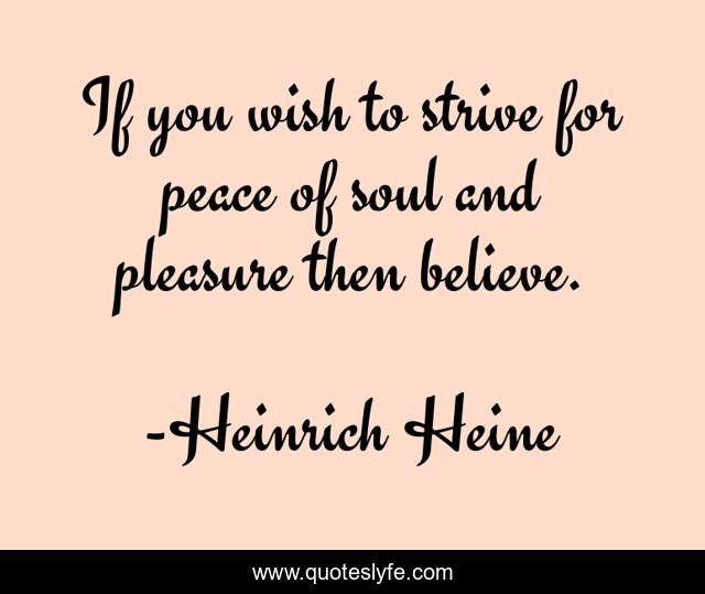This page presents the quote "If you wish to strive for peace of soul and pleasure then believe.". Author of this quote is Heinrich Heine. This quote is about faith, unity,.