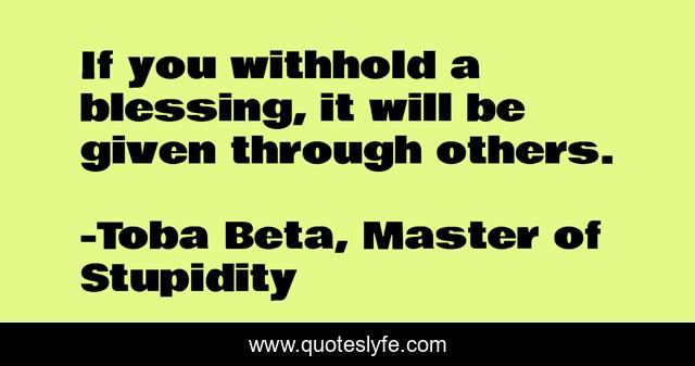 This page presents the quote "If you withhold a blessing, it will be given through others.". Author of this quote is Toba Beta, Master of Stupidity. This quote is about withold, distribution, blessing,.