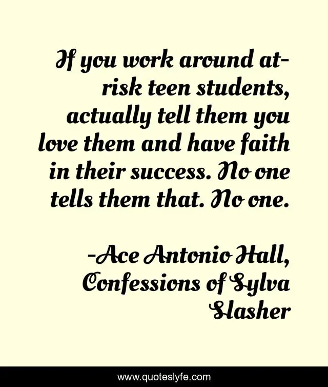 This page presents the quote "If you work around at-risk teen students, actually tell them you love them and have faith in their success. No one tells them that. No one.". Author of this quote is Ace Antonio Hall, Confessions of Sylva Slasher. .