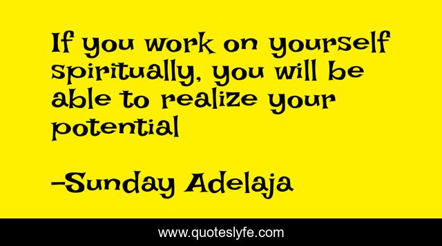 This page presents the quote "If you work on yourself spiritually, you will be able to realize your potential". Author of this quote is Sunday Adelaja. This quote is about life, talent, gift, work, spiritual, self-development, calling, potential, purpose,.