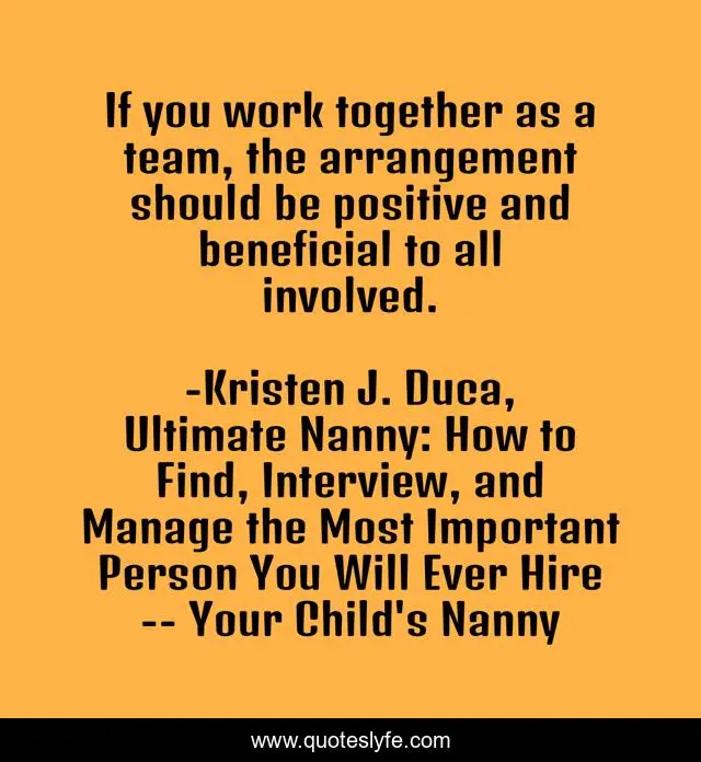 "Kristen J. Duca, Ultimate Nanny: How to Find, Interview, and Manage the Most Important Person You Will Ever Hire -- Your Child's Nanny Quotes." Quoteslyfe.com, 2025. Sun. 07 Dec. 2025. <https://www.quoteslyfe.com/quote/If-you-work-together-as-a-team-166951>.