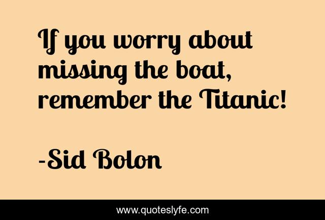 This page presents the quote "If you worry about missing the boat, remember the Titanic!". Author of this quote is Sid Bolon. This quote is about humorous, quotes, witty,.