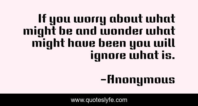 This page presents the quote "If you worry about what might be and wonder what might have been you will ignore what is.". Author of this quote is Anonymous. .