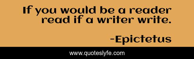 This page presents the quote "If you would be a reader read if a writer write.". Author of this quote is Epictetus. This quote is about writers, writing,.