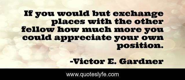 This page presents the quote "If you would but exchange places with the other fellow how much more you could appreciate your own position.". Author of this quote is Victor E. Gardner. .