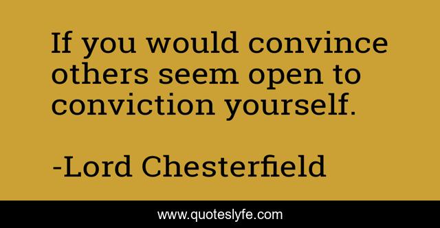 This page presents the quote "If you would convince others seem open to conviction yourself.". Author of this quote is Lord Chesterfield. .