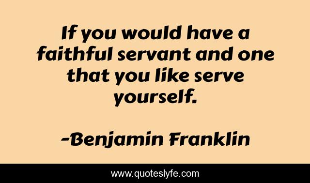 This page presents the quote "If you would have a faithful servant and one that you like serve yourself.". Author of this quote is Benjamin Franklin. This quote is about self, reliance,.
