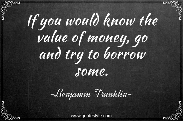 This page presents the quote "If you would know the value of money, go and try to borrow some.". Author of this quote is Benjamin Franklin. .