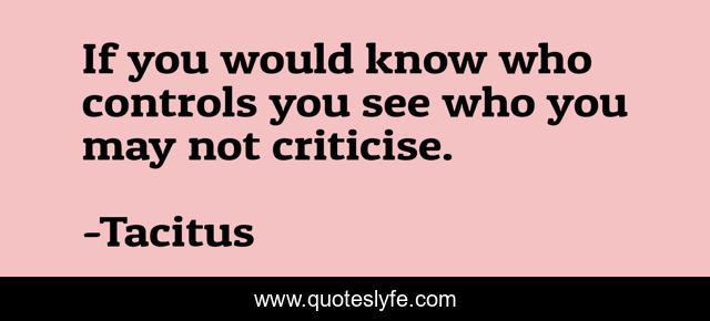 This page presents the quote "If you would know who controls you see who you may not criticise.". Author of this quote is Tacitus. This quote is about anarchism, paranoia, authority,.