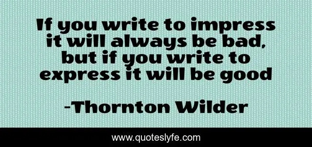 This page presents the quote "If you write to impress it will always be bad, but if you write to express it will be good". Author of this quote is Thornton Wilder. .