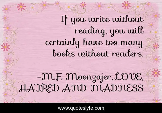 "M.F. Moonzajer, LOVE, HATRED AND MADNESS Quotes." Quoteslyfe.com, 2025. Fri. 05 Dec. 2025. <https://www.quoteslyfe.com/quote/If-you-write-without-reading-you-will-151258>.