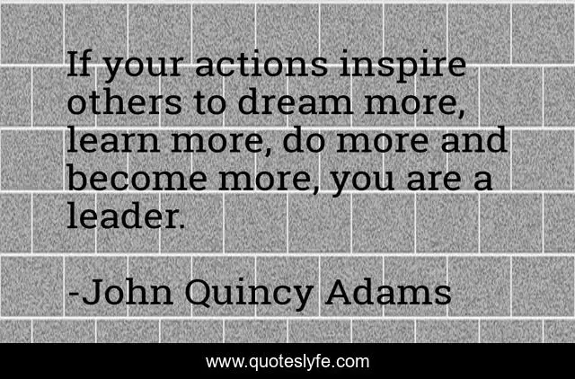 This page presents the quote "If your actions inspire others to dream more, learn more, do more and become more, you are a leader.". Author of this quote is John Quincy Adams. This quote is about enthusiasm, leadership, inspirational,.