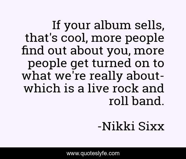 This page presents the quote "If your album sells, that's cool, more people find out about you, more people get turned on to what we're really about-which is a live rock and roll band.". Author of this quote is Nikki Sixx. This quote is about rock and roll, live, people,.