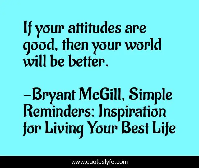 "Bryant McGill, Simple Reminders: Inspiration for Living Your Best Life Quotes." Quoteslyfe.com, 2025. Fri. 05 Dec. 2025. <https://www.quoteslyfe.com/quote/If-your-attitudes-are-good-then-your-221525>.