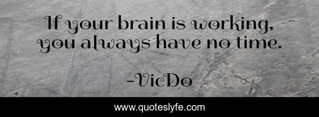This page presents the quote "If your brain is working, you always have no time.". Author of this quote is VicDo. This quote is about brain, time,.