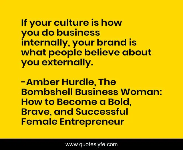 This page presents the quote "If your culture is how you do business internally, your brand is what people believe about you externally.". Author of this quote is Amber Hurdle, The Bombshell Business Woman: How to Become a Bold, Brave, and Successful Female Entrepreneur. This quote is about business-advice, business, customer-service, branding, brand, company-culture, leadership, marketing,.