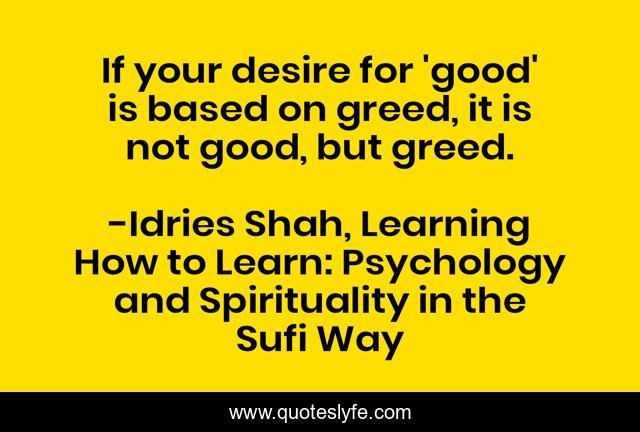 This page presents the quote "If your desire for 'good' is based on greed, it is not good, but greed.". Author of this quote is Idries Shah, Learning How to Learn: Psychology and Spirituality in the Sufi Way. This quote is about evolution, sufi, conditioning, learning, teaching, sufis, greed,.