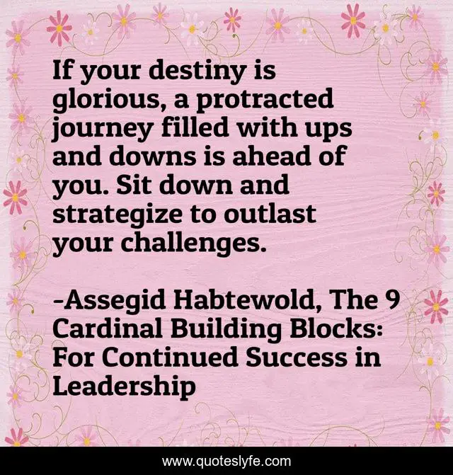 "Assegid Habtewold, The 9 Cardinal Building Blocks: For Continued Success in Leadership Quotes." Quoteslyfe.com, 2025. Mon. 08 Dec. 2025. <https://www.quoteslyfe.com/quote/If-your-destiny-is-glorious-a-protracted-107237>.