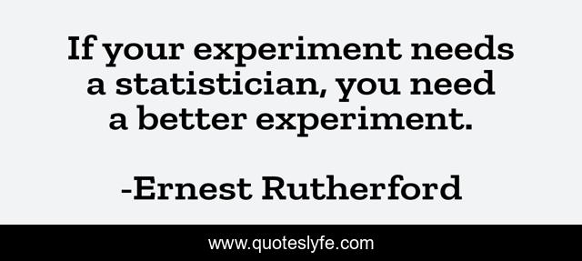 This page presents the quote "If your experiment needs a statistician, you need a better experiment.". Author of this quote is Ernest Rutherford. This quote is about science, experiments, statistics,.
