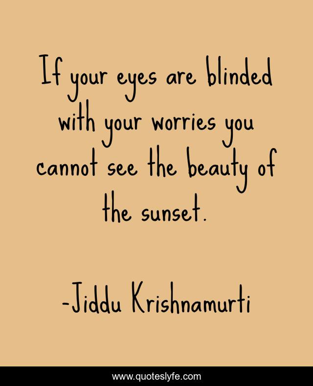 This page presents the quote "If your eyes are blinded with your worries you cannot see the beauty of the sunset.". Author of this quote is Jiddu Krishnamurti. .